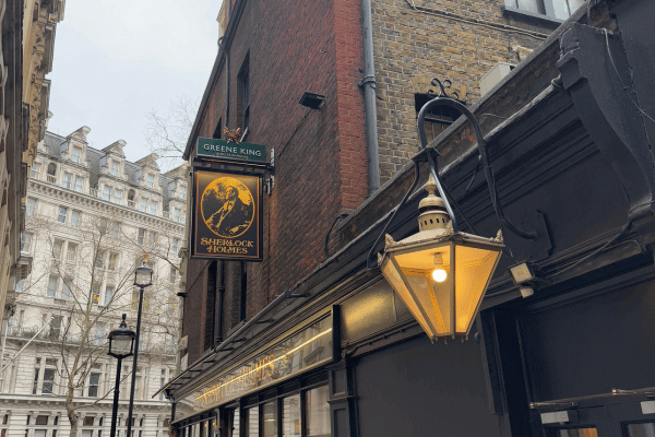 Suppose you have ever enjoyed reading any of Sir Arthur Cannon Doyle’s mysteries or watching any of the myriad renditions of the adventures of Sherlock Holmes. In that case, this is the place to spend an afternoon. There is so much memorabilia that you will be unable to take it all in. Posters, photos, plaques, and artifacts are scattered throughout the pub. You will receive an education on this mystery series and possibly a primer on English beer.